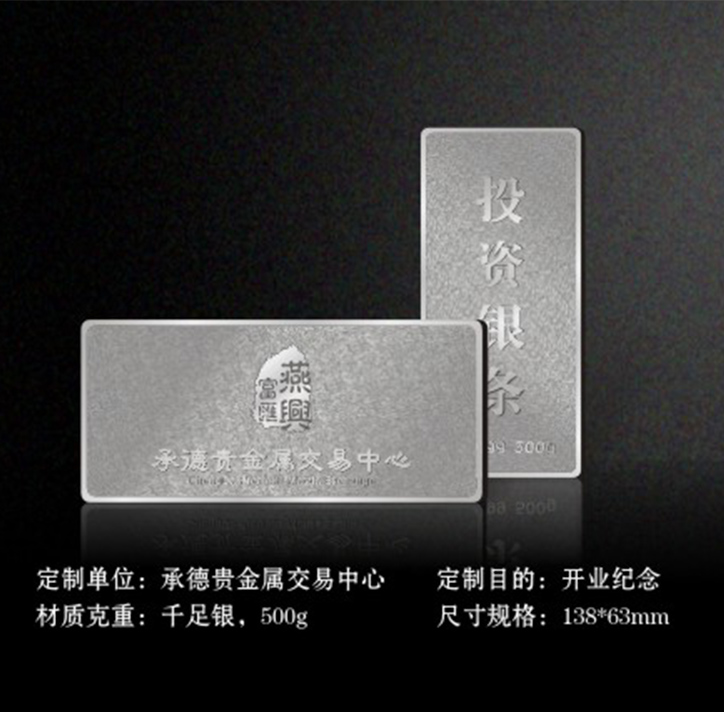 相關背景:承德貴金屬交易中心為慶祝開業(yè),定制了銀條禮品,產(chǎn)品設計大氣,包裝精美